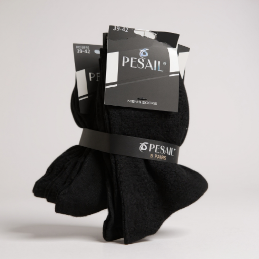 Pesail,Férfi normál szárú zokni,5 pár/csomag,fekete